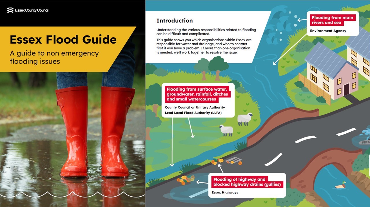 Heavy rain or high tides can overwhelm drains and pipes, which have limited capacity. When water flows in faster than it can drain—like an overflowing funnel—flooding occurs. Often, we must wait for drains to recover. If road or highway flooding doesn’t clear within 24 hours report it to Essex Highways using their report it tool.